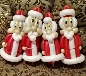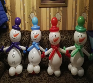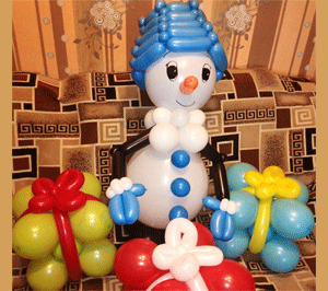 Елки,снеговики, подарки, Снегурочка с Дедом Морозом и снежинки.