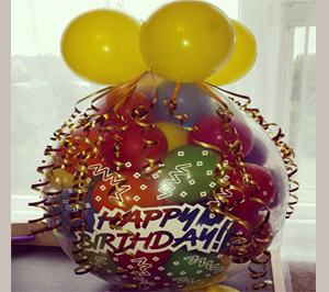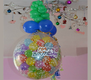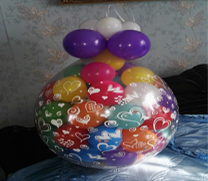 Шар-сюрприз подвешивается к потолку, затем ,когда детки собираются под ним ,лопается острым предметом!