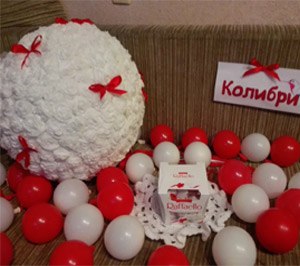 Нежная пиньята белого цвета, напоминающая всем знакомые конфеты Rafaello